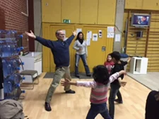 For one drizzly, chilly week in October of 2016, two teams of Breath-Body-Mind teachers, supported by private donations to Serving Those Who Serve, worked with refugees in shelters in Berlin and taught therapists how to relieve stress, anxiety, depression, and trauma using movement, breathing and meditative practices. Dr. Richard P. Brown, assisted by Samuel Kirschner (The BREAZE) and Jean-Marie Defossez (Coach-Respiration®), worked with the men and boys. Dr. Pat Gerbarg, assisted by Dehanna Rice-Inkles, (energymedznyc@yahoo.com) and Ann Fleuchaus (annflu@me.com), taught the women and children. We wish to thank Friederike Masz for her tireless efforts in bringing us to Berlin.